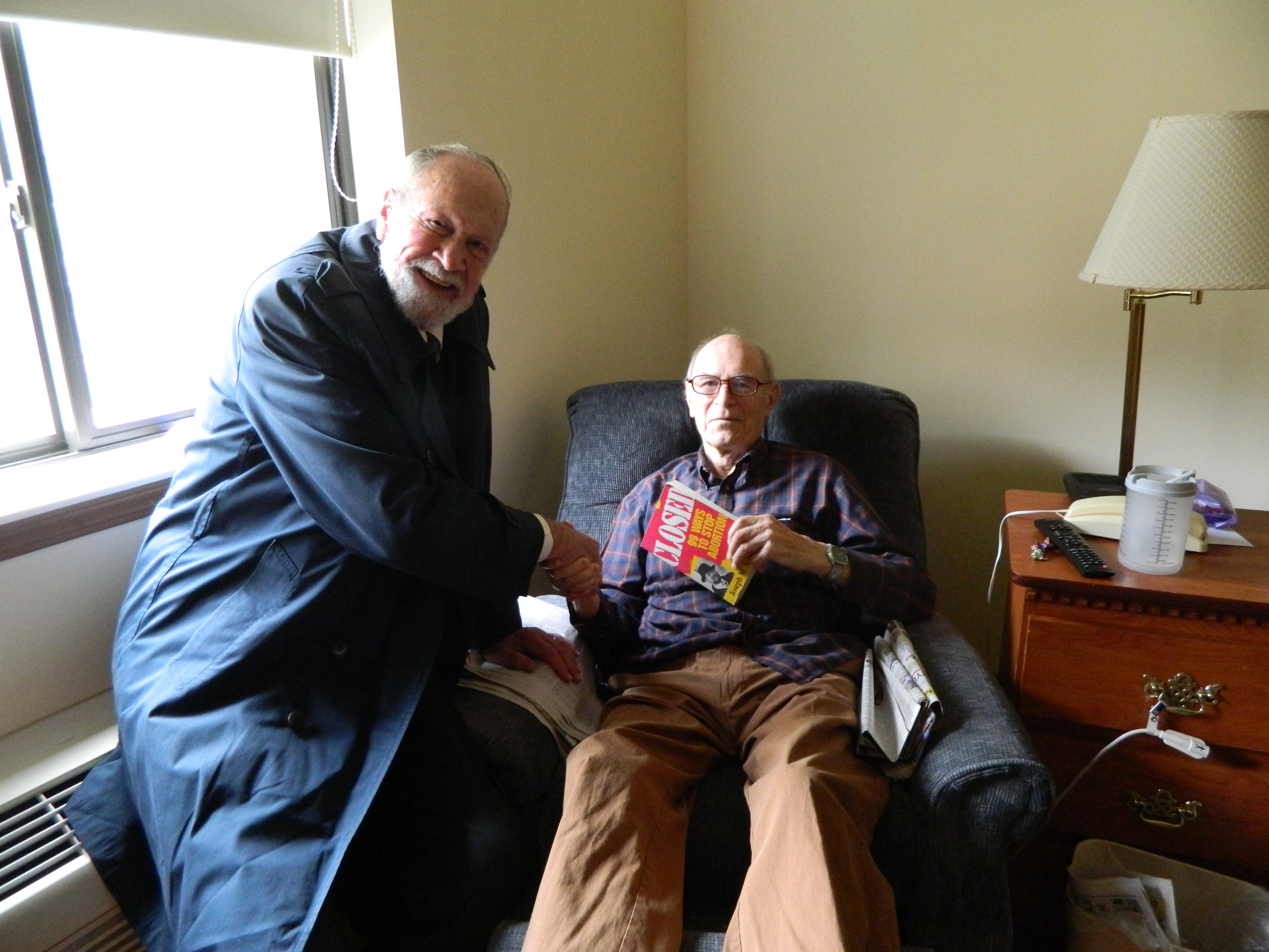 Next stop was a visit with the a man who was on the front lines before there were front lines: Orville Burkemper. Orville’s been at it since 1967. A man whose physical strength was matched only by his strength of character. A man whose actions wrote the preface to Joe’s book long before it was written. Once he single-handedly emptied Planned Barrenhood’s abortion mill waiting room. Orville entered that waiting room that Christmas Eve morning dressed as Santa. He offered each of the 14 moms a gift for their child. Instructing them to open the gift with their child next Christmas. He said one by one, gift in hand, the moms left. Until the room was empty. And so was Santa’s bag. Closed tour 2014 Orville Burkemper  (2)